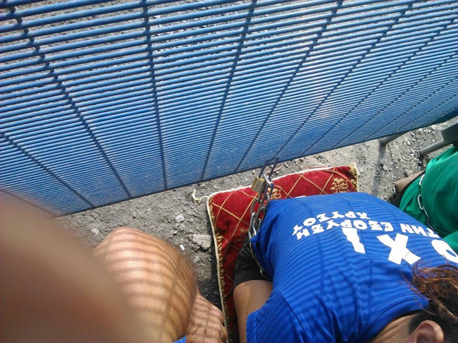 Τέσσερις γυναίκες έχουν αλυσοδεθεί στην πύλη, ενώ στο σημείο υπάρχει περιπολικό της ΕΛ.ΑΣ. Οι αστυνομικοί, σύμφωνα με το seleo, ενημέρωσαν τις διαμαρτυρόμενες ότι θα προχωρήσουν σε συλλήψεις στην περίπτωση που χρειαστεί να ανοίξει η πύλη για να περάσει όχημα της εταιρείας.
