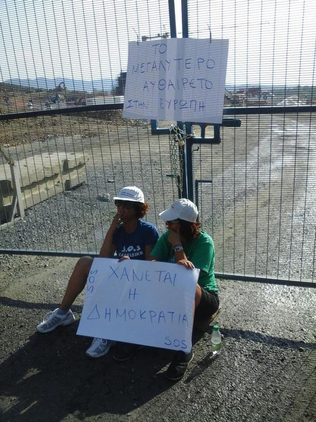 Σήμερα το πρωί 12 γυναίκες βρίσκονται στην είσοδο του εργοταξίου της «Ελληνικός Χρυσός» στις Σκουριές σε μια συμβολική διαμαρτυρία ενάντια στην τροπολογία που –αν ψηφιστεί αύριο στη Βουλή- νομιμοποιεί τις οικοδομικές εργασίες των εγκαταστάσεων του εργοστασίου εμπλουτισμού στις Σκουριές.
