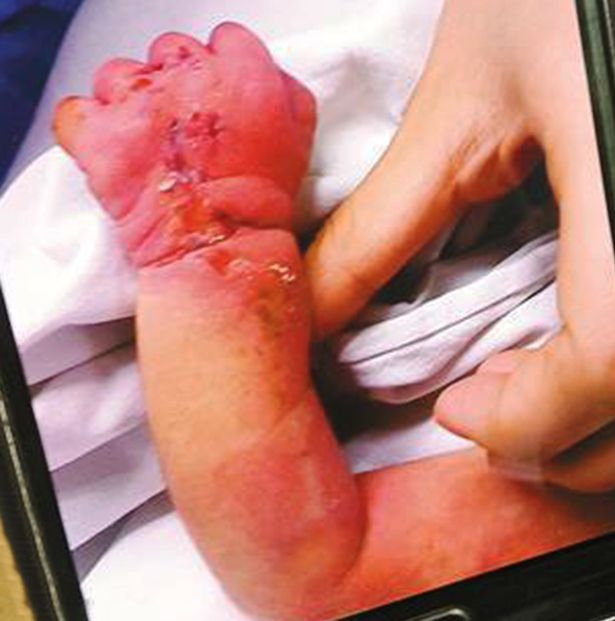 Ο εκπρόσωπος του νοσοκομείου δήλωσε: «Ήταν πραγματικά συγκλονιστικό, το χέρι του παιδιού υπέστη σοβαρό τραυματισμό και είναι γεμάτο μώλωπες και πληγές που προκλήθηκαν από τις συνεχόμενες δαγκωματιές. Ευτυχώς, οι γιατροί επενέβησαν έγκαιρα και κατάφεραν να αρπάξουν το παιδί από τη μητέρα, που συνέχισε να δαγκώνει το αγοράκι μπροστά στα έντρομα μάτια τους. Στη μητέρα χορηγήθηκε ηρεμιστικό, ενώ το μωρό μεταφέρθηκε σε ασφαλές μέρος».