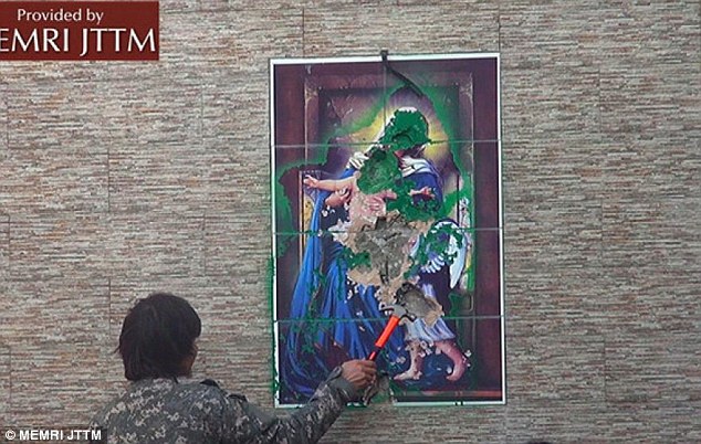 Οι τζιχαντιστές καταστρέψαν χριστιανικά σύμβολα και αντικατέστησαντον σταυρό με την σημαία τους. Όπως αναφέρει η τρομοκρατική οργάνωση, ο βανδαλισμός γίνεται για να καταστραφούν τα ιδεολογικά πρότυπα που δεν σχετίζονται με το νόμο του Ισλαμικού κράτους.