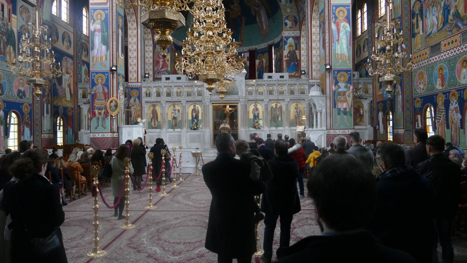 Φωτογραφικά στιγμιότυπο από τον Μητροπολιτικό Ιερό Ναό Αγίου Αχιλλίου, όπου όπως βλέπετε υπάρχει αρκετός κόσμος στην εκκλησία που παρακολουθεί τη Θεία Λειτουργία.