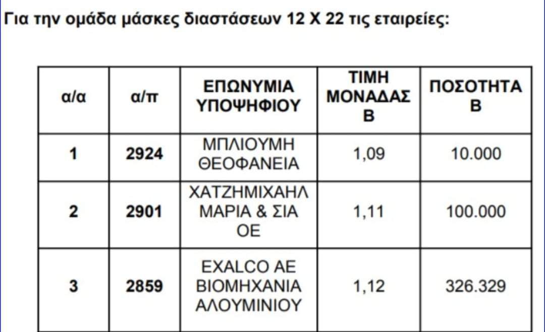 Μετά τις παλινωδίες της κυβέρνησης για το πώς οι μαθητές θα προμηθεύονταν τις μάσκες εν όψει της έναρξης της σχολικής χρονιάς, ο υπουργός Εσωτερικών Τάκης Θεοδωρικάκος, ανακοίνωσε ότι αυτές θα διατεθούν από το κράτος, μέσω της Κεντρικής Ένωσης Δήμων Ελλάδος. Με συνοπτικές διαδικασίες η ΚΕΔΕ αποφάσισε στις 7 Σεπτεμβρίου, δηλαδή μόλις την περασμένη εβδομάδα, να αναθέσει την παρασκευή μέρους των μασκών σε τρεις εταιρίες. Ανάμεσα σε αυτές και η Exalco ΑΕ Βιομηχανία Αλουμινίου, η οποία ανέλαβε να παρασκευάσει πάνω από 300.000 μάσκες αντί ενός 1,12 ευρώ για κάθε μία από αυτές. Οι άλλες δύο εταιρίες είναι οι «ΜΠΛΙΟΥΜΗ ΘΕΟΦΑΝΕΙΑ» και «ΧΑΤΖΗΜΙΧΑΗΛ ΜΑΡΙΑ & ΣΙΑ ΟΕ».