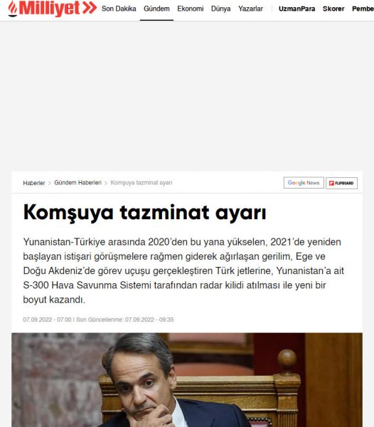 Ενδεικτικό νέο δημοσίευμα της φιλοκυβερνητικής εφημερίδα Milliyet η οποία να επιχειρεί να αναδείξει τις δυνατότητες της Τουρκίας να προσφύγει στο Διεθνές Δικαστήριο εναντίον της Ελλάδας.