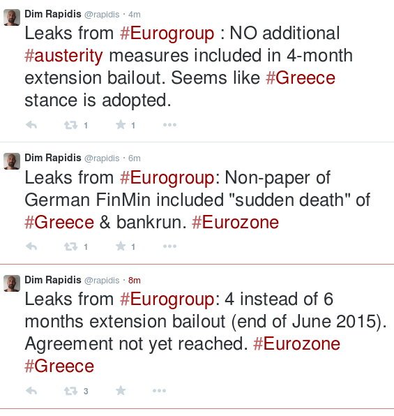 Πληροφορίες ανέφεραν ότι οι Πιέρ Μοσκοβισί, Κριστίν Λαγκάρντ και Γερούν Ντάισελμπλουμ να αναλαμβάνουν ρόλο διαμεσολαβητή για να γεφυρωθεί το χάσμα μεταξύ Βόλφγκανγκ Σόιμπλε και Γιάνη Βαρουφάκη.