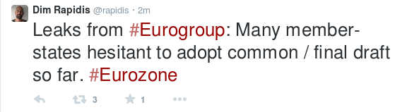 Σύμφωνα με πηγές από τις Βρυξέλλες, αυτή την ώρα κατατίθενται drafts από αρκετές χώρες και από την Γερμανία, προκειμένου να ολοκληρωθεί το κείμενο, αλλά οι διαρροές για το τι περιλαμβάνουν αυτές οι προτάσεις είναι ελάχιστες. Ζητούνται περαιτέρω διευκρινίσεις από την Αθήνα. Ζητούν συγκεκριμένα από την ελληνική κυβέρνηση να διευκρινίσει ποιες είναι συγκεκριμένες οι μεταρρυθμίσεις που θα πραγματοποιήσει και ποιες μονομερείς ενέργειες, συγκεκριμένα, δεν προτίθεται να κάνει.