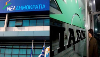 Τα τελευταία «φύλλα συκής» πέφτουν. Τα δύο αδελφά κόμματα ΠΑΣΟΚ και ΝΔ έσονται πλέον «εις σάρκαν μία». Τα δύο πάλαι ποτέ πολιτικά «θηρία» του ελληνικού δικομματικού πολιτικού συστήματος, τα επονομαζόμενα και «μονομάχοι», τα οποία μας παραμύθιαζαν στο προσκήνιο και μας δίχαζαν με τις δήθεν διαχωριστικές γραμμές τους, με το δήθεν αβυσσαλέο πολιτικό μίσος και τις συγκρουσιακές ιδεολογικές αντιπαραθέσεις, έριξαν τις μάσκες και αποκαλύπτεται τώρα το τεράστιο πολιτικό θέατρο των δήθεν αντιπαραθέσεων που έπαιζαν τόσα χρόνια εμπαίζοντας το λαό.