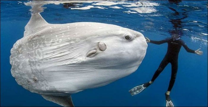 Το τεράστιο ψάρι με επίπεδο σώμα και μικροσκοπικά πτερύγια, που συνήθως ζει στα βαθιά νερά των ωκεανών, αποτέλεσε ένα ασυνήθιστο θέαμα για τον φωτογράφο και δύτη Daniel Botelho.