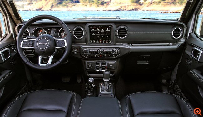 Παρά τον σκληροτράχηλο χαρακτήρα του, το Gladiator, είναι πλήρως εξοπλισμένο με στοιχεία όπως ο αυτόματος κλιματισμός, το προηγμένο σύστημα πολυμέσων Uconnect με οθόνη αφής και δυνατότητα mirroring, αλλά και με όλες τις συνήθεις ηλεκτρικές ευκολίες. Μοναδικά στοιχεία αποτελούν το αποσπώμενο αδιάβροχο ηχείο Bluetooth και η μπροστά αυτοκαθαριζόμενη κάμερα, ενώ διαθέσιμη είναι επίσης μια ευρεία γκάμα αξεσουάρ για την πλήρη εξατομίκευση κάθε Gladiator.